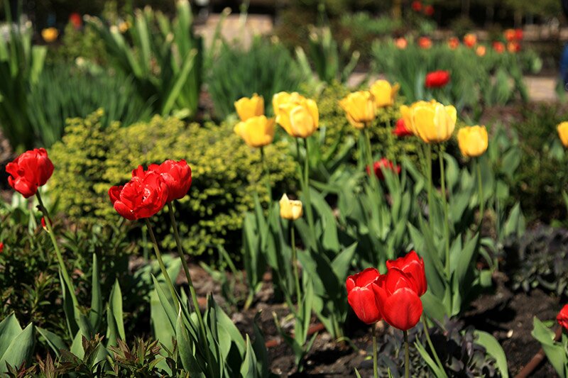 Пестрит тюльпанами весна
