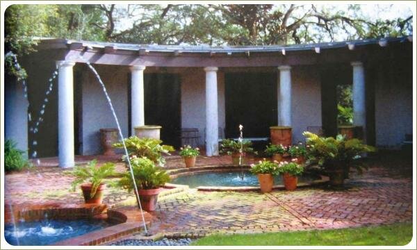 Фонтанчик или крошечный водоемчик располагают в центре внутреннего дворика-патио.